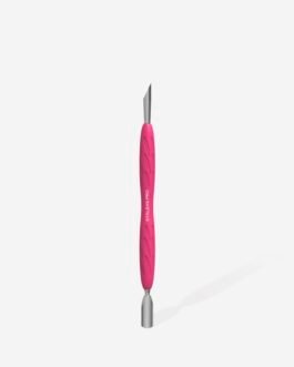 - Część robocza „wąski, zaokrąglony pusher” przeznaczona jest do podnoszenia i odsuwania skórki, wygodna w pracy z wąską i średnią płytką paznokcia.