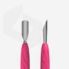 - Część robocza „toporek” skutecznie oczyszcza płytkę paznokcia z narośniętej skóry dzięki ręcznemu, dwustronnemu ostrzeniu.