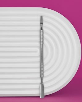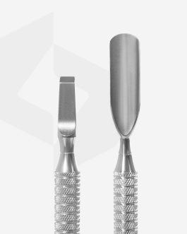 - Zaokrąglony pusher o szerokim kształcie, nóż: Narzędzie posiada zaokrąglony pusher o szerokim kształcie oraz nóż, co umożliwia pielęgnację paznokci o różnych szerokościach płyt paznokciowych oraz efektywne usuwanie nagromadzonej skórek.