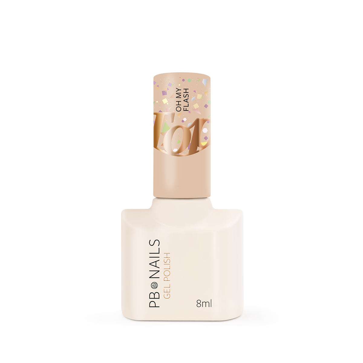 Oh My Flash Top Coat to top do hybryd i żeli łączący w sobie dwa efekty – multikolorowe płatki metalicznej folii oraz małe drobinki, pięknie odbijające światło – naturalne, jak i sztuczne. Top mieni się różnymi kolorami, w zależności od lakieru podkładowego – koniecznie wypróbuj go w połączeniu z głębokimi odcieniami niebieskiego i fioletowego!