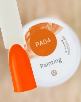 Żel do zdobień Painting PA04 to unikatowy produkt z kolekcji żeli kolorowych. Jego minimalna warstwa dyspersyjna pozwala na malowanie po nabłyszczonej powierzchni. Dzięki bardzo mocnej pigmentacji wystarczy jedna warstwa, by uzyskać doskonałe krycie. Konsystencja przypominająca farby akrylowe sprawia, że jest idealny do malowania technikami One Stroke, Zhostovo oraz metodą Micropainting. Żel jest dostępny w kolorze pomarańczowym i posiada pojemność 5g.